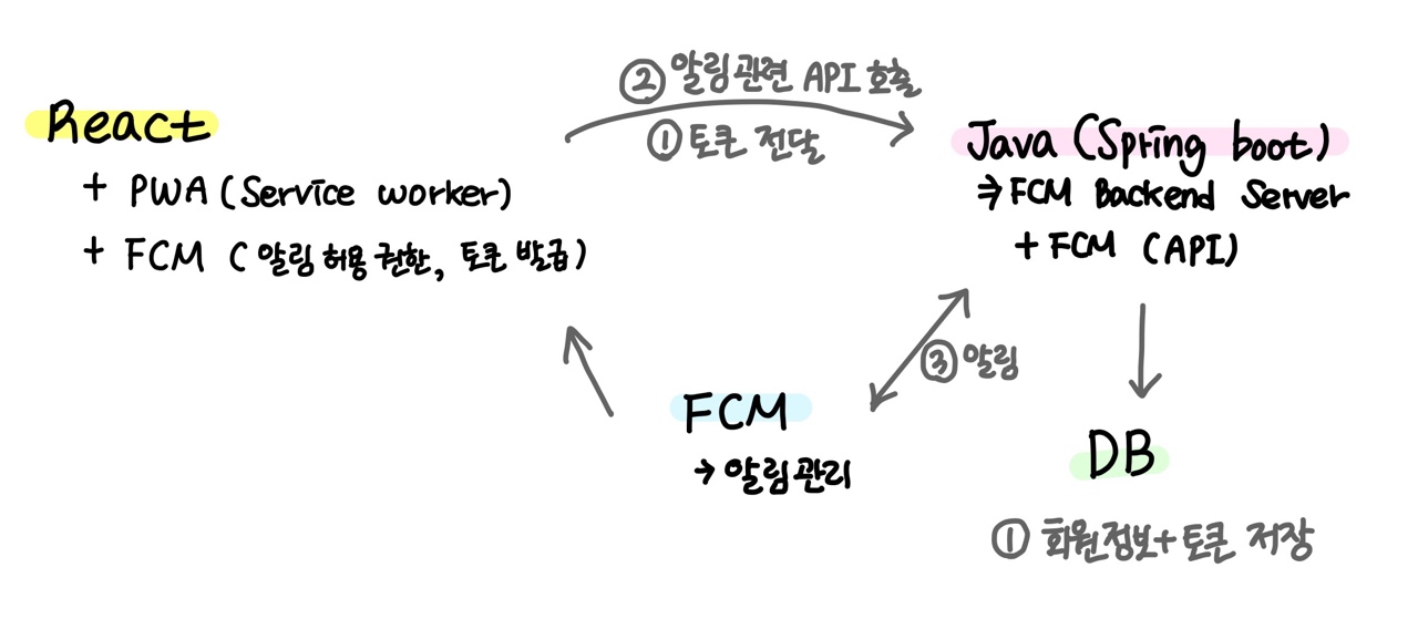 해당 프로젝트에선 백엔드 서버인 Java에서 알림을 구현했지만, Node.js,Python 등에서도 구현이 가능하다고 한다.